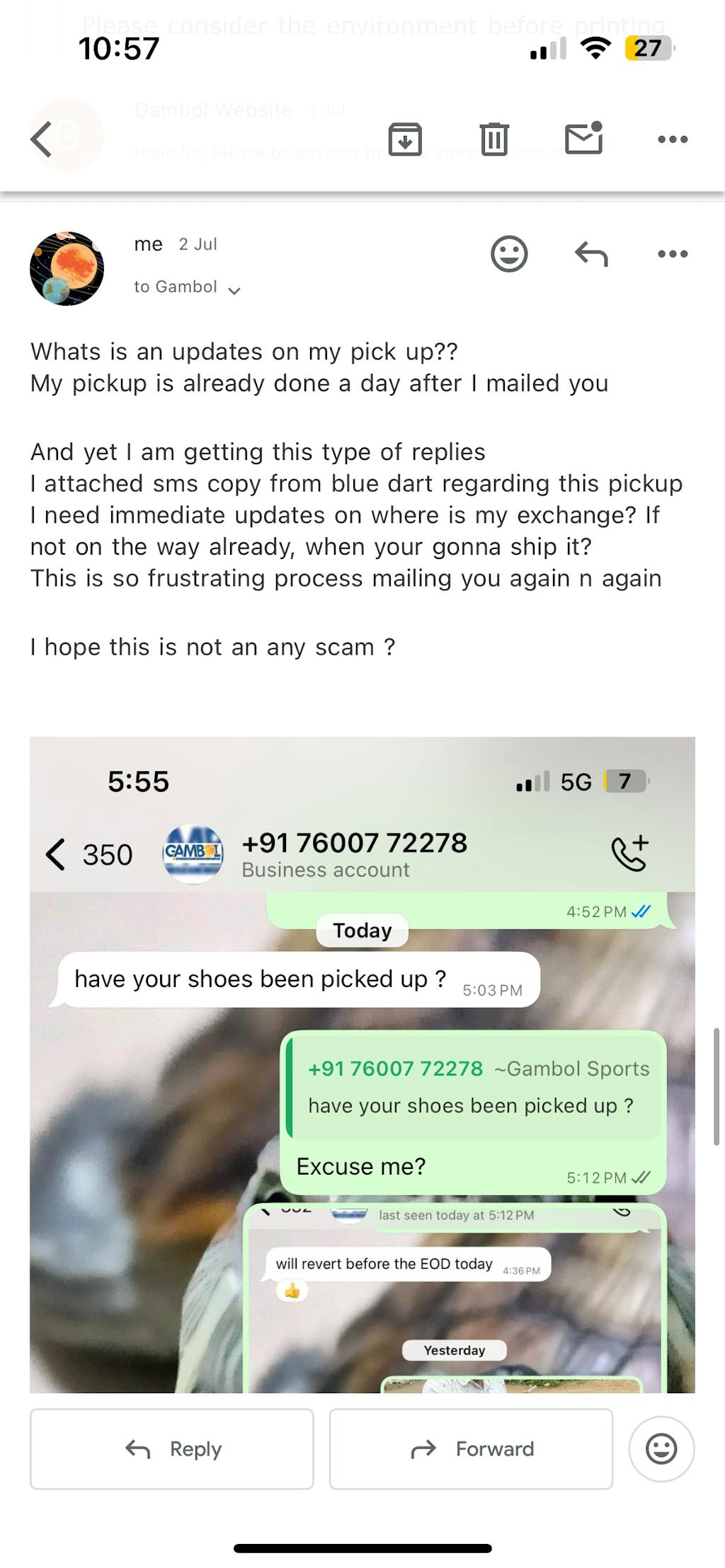 One of the worst customer service I ever faced. I ordered shoes (five finger) after delivery of the shoe , I was facing size issue then I contacted customer service and their response is too cold. He just told me mail on our support mail and just hang up on me. Meanwhile, after buying shoe, he was asking what size of your shoe? is sir now is this your services? It’s been more than seven days. I returned the shoe four days ago till I didn’t received any exchange.