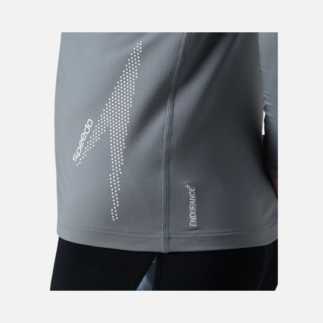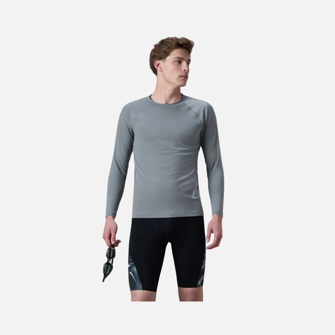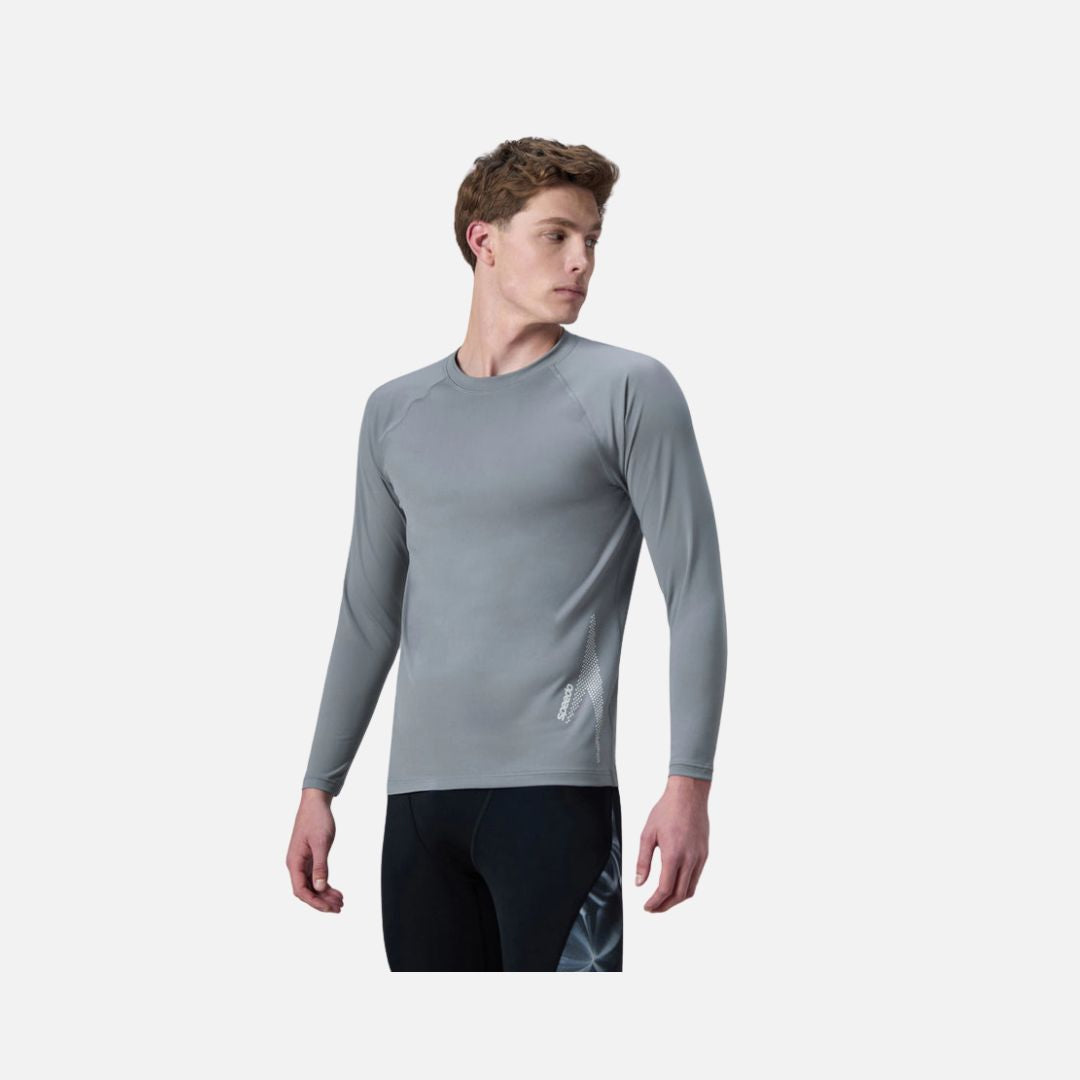 Speedo Men's Endurance+ Long Sleeve Performance Suntop - Coin Grey & White