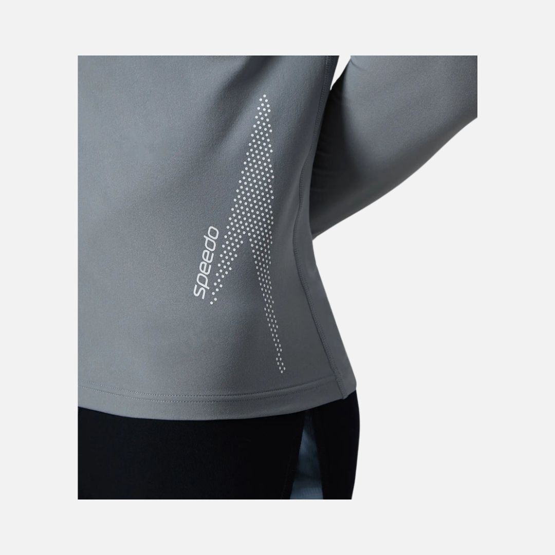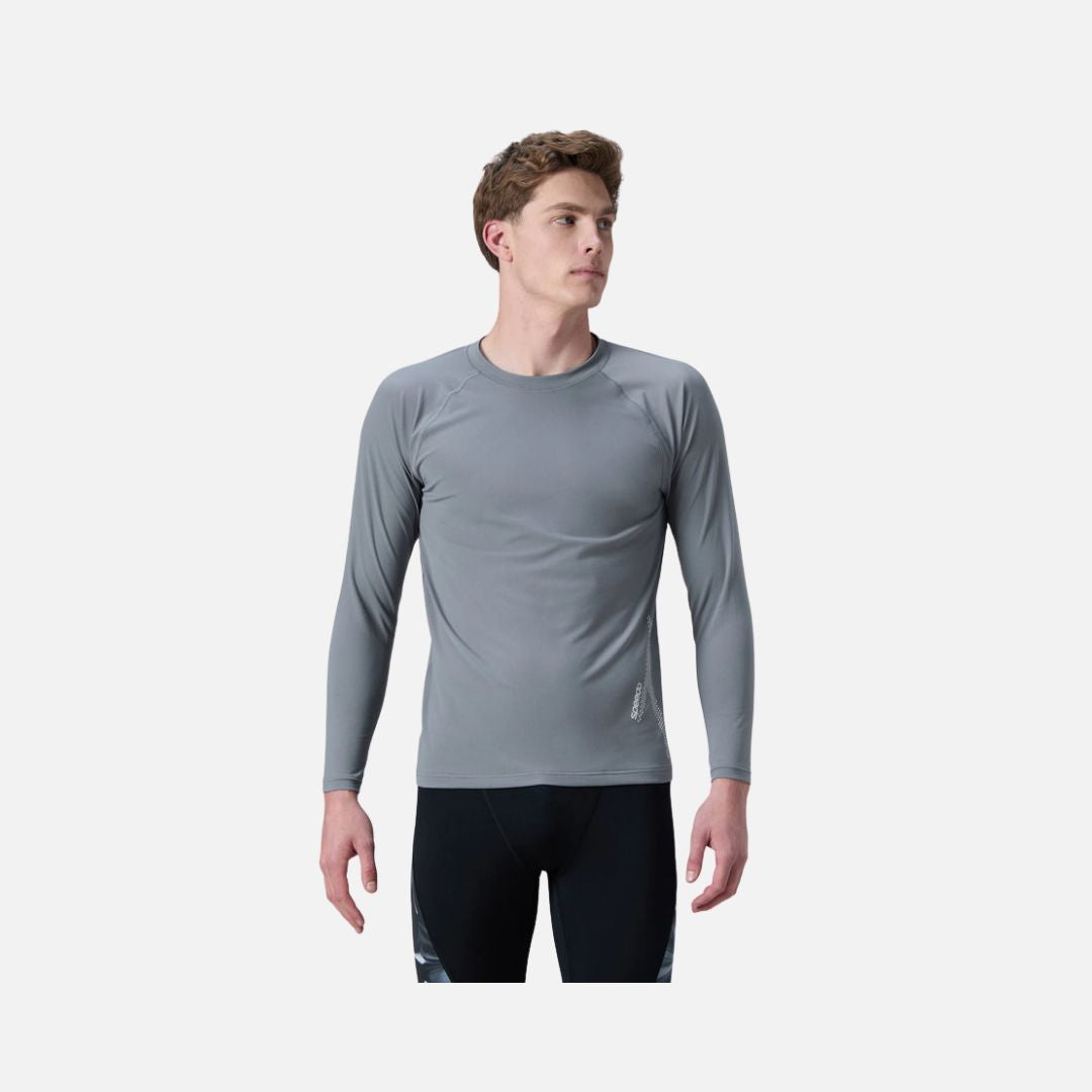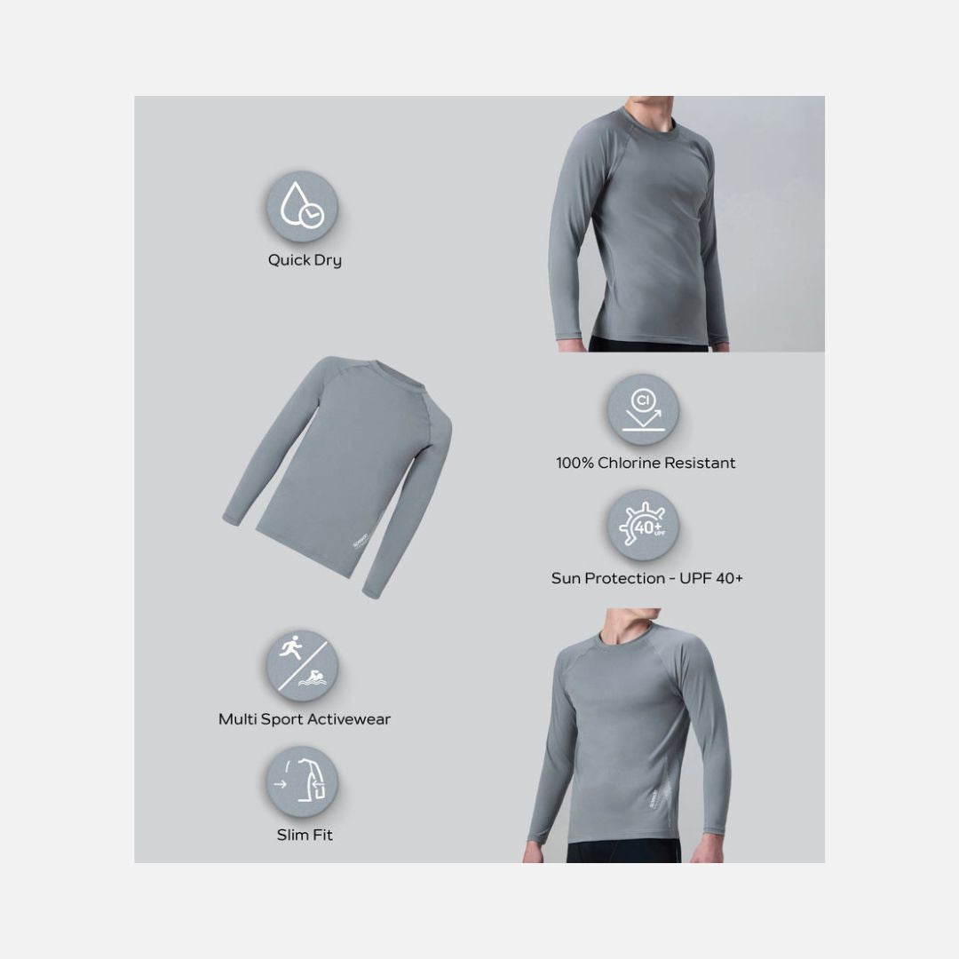 Speedo Men's Endurance+ Long Sleeve Performance Suntop - Coin Grey & White