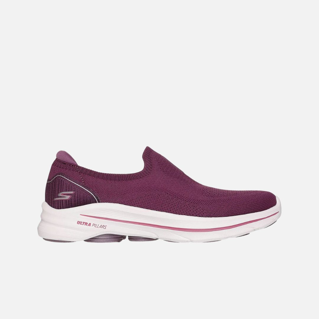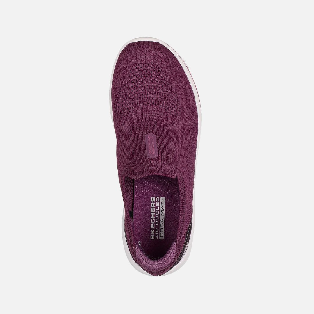 Put a stylish spring in your step with Skechers GO WALK™ 8 - Aleena. This vegan walking style features a Slip-on solid colour engineered knit upper, a breathable Skechers Air-Cooled Goga Mat™ insole, lightweight ULTRA GO® midsole cushioning, high-rebound Ultra Pillars®, and Comfort Pillar Technology® for added support.Key Features