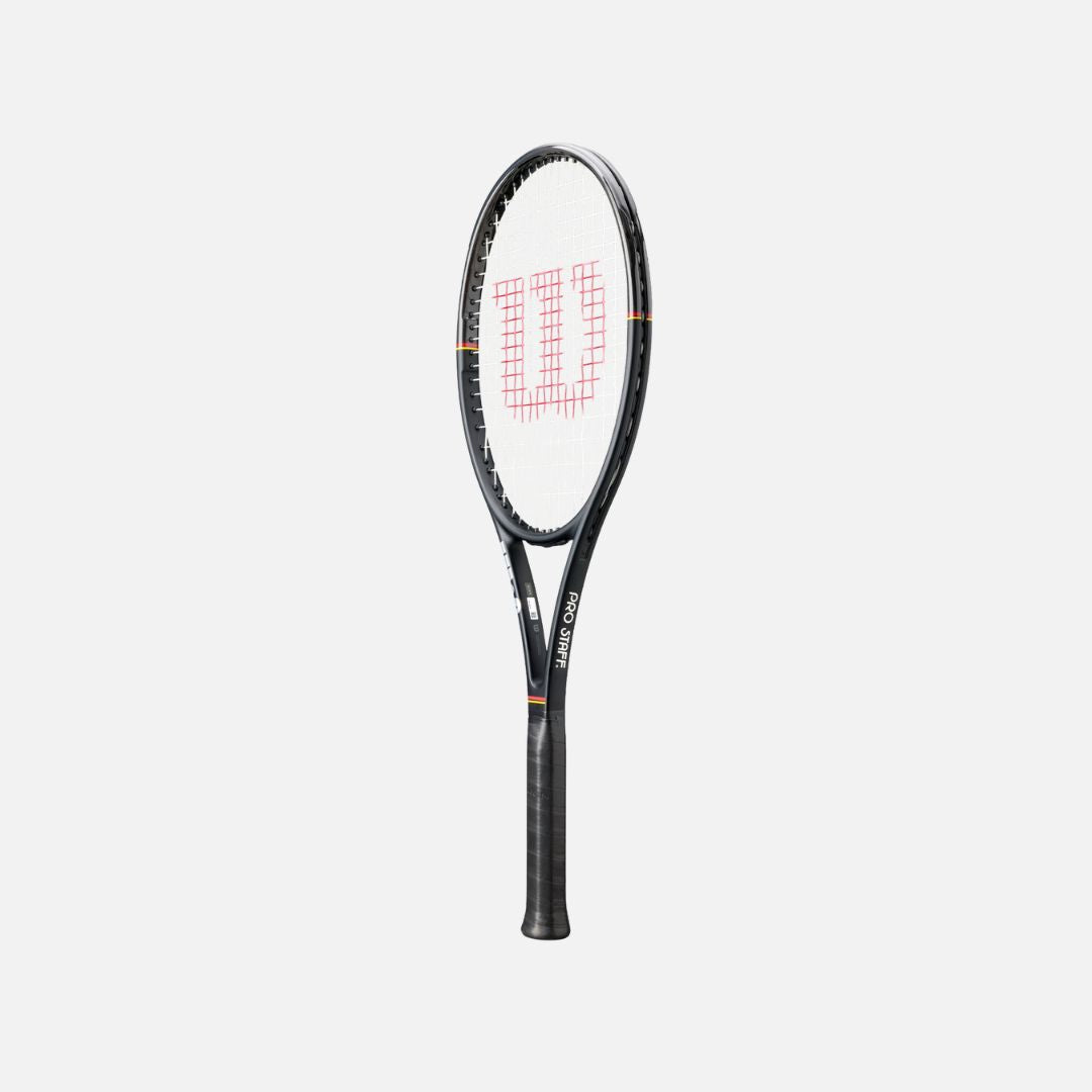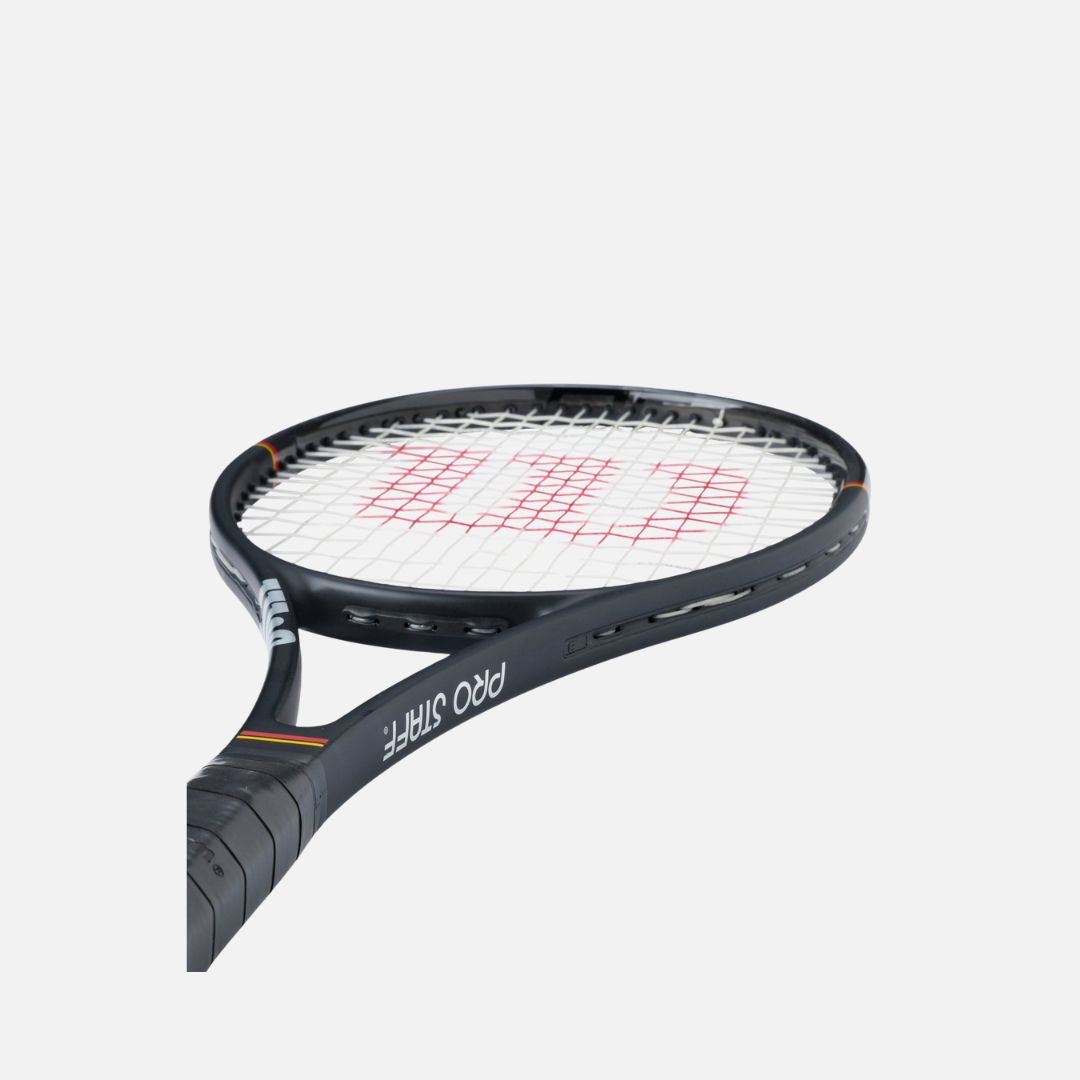 Since it debuted in the '80s, Wilson's Pro Staff tennis rackets have been sweeping up titles and winning the hearts of players worldwide. The Pro Staff 97 Classic connects vintage style with four decades of innovation. Designed with Paradigm Bending technology to optimize the bending profile between the shaft and hoop, it offers precision and pinpoint control. We arranged the double braid at 45-degree angles, allowing the frame to breathe more upon impact. This increases dwell time while maintaining the stability responsible for that signature Pro Staff feel.