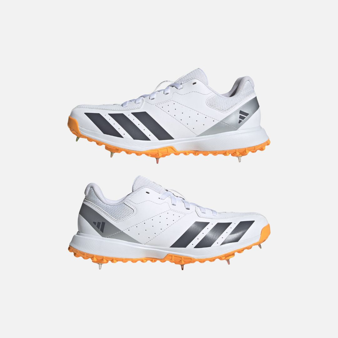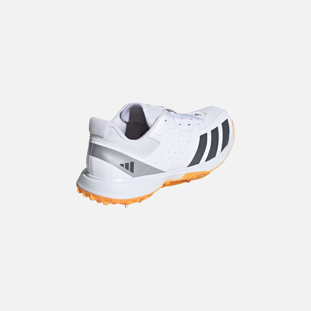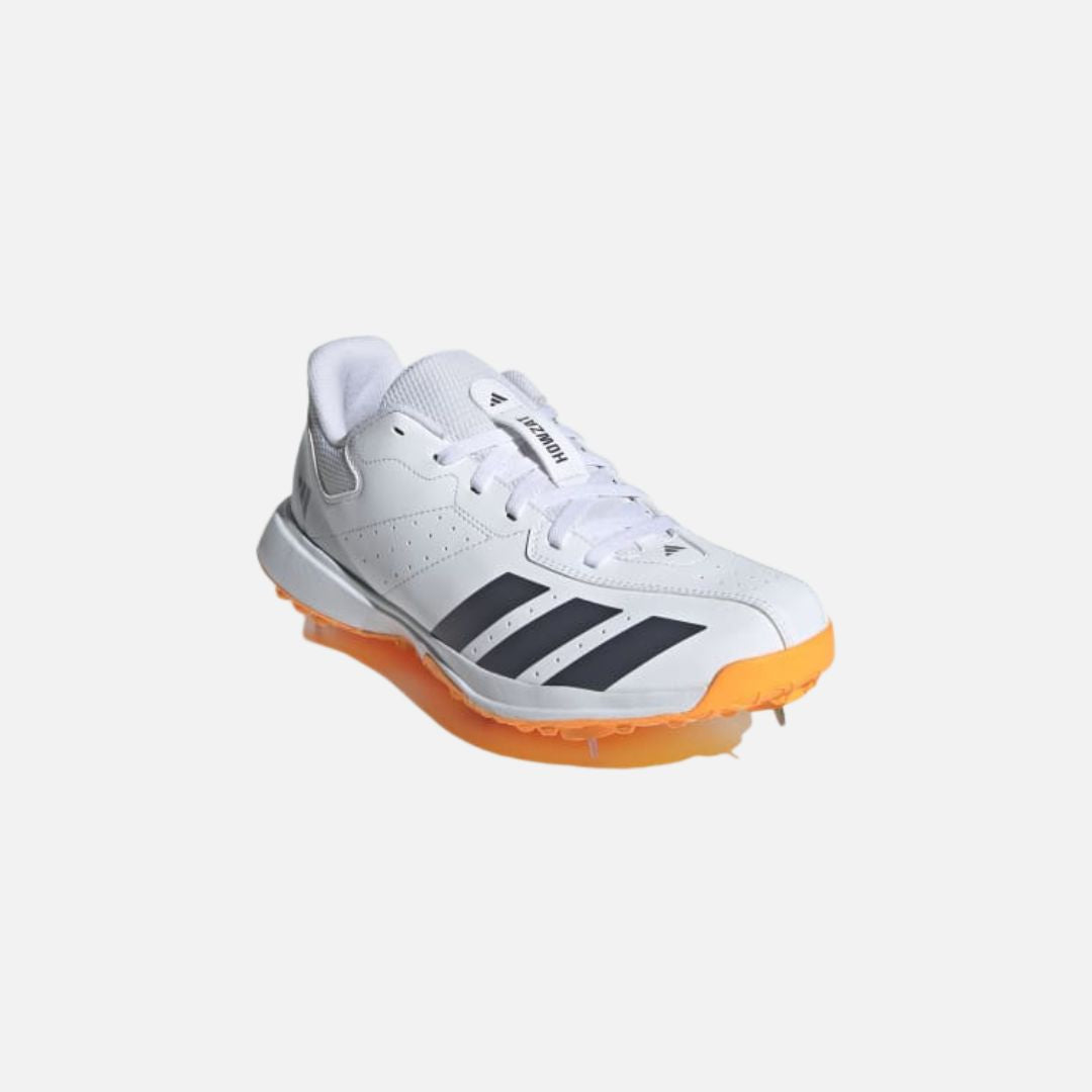 The Howzat Spike trainers are designed with club matches and cricket tournaments in mind. They offer a fantastic blend of support and durability for those long weekend matches. The trainers feature a soft collar mesh insert, full mesh tongue, and mesh heel lining work together to manage moisture, helping to keep your feet dry and comfortable. The full-length rubber lugged outsole, equipped with seven Champ hardened steel spikes, provides reliable grip on soft cricket grounds. Whether you're bowling or batting, these adidas trainers are your reliable partner for your cricket games.