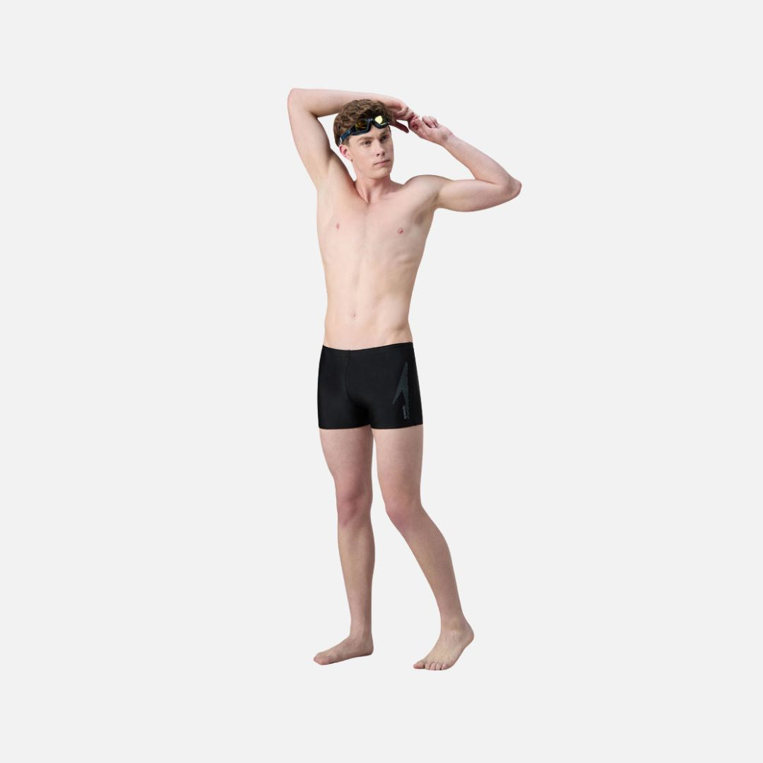 Speedo Men's Endurance10 Boom Logo Print Aquashort - Black & Coin Grey